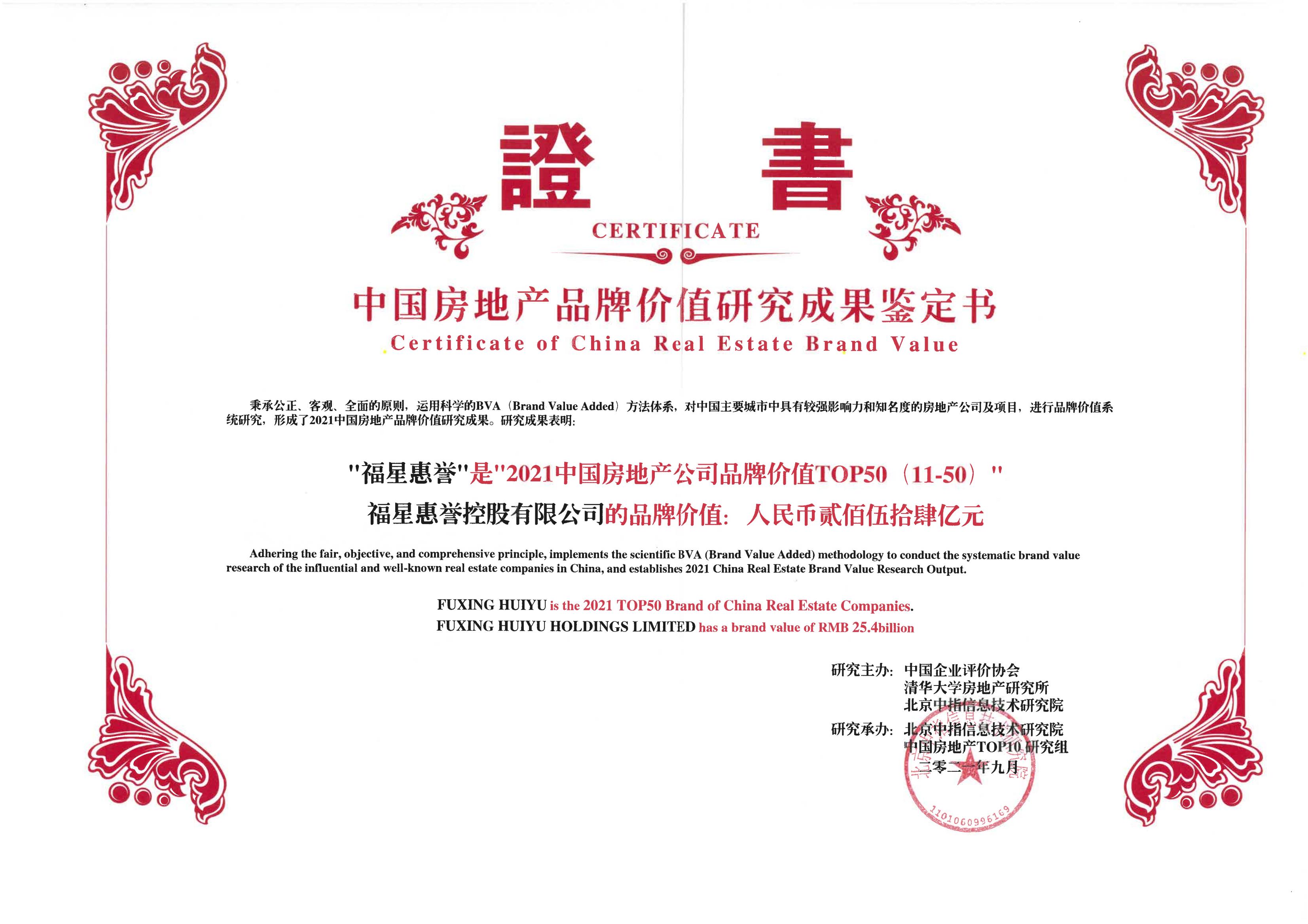 2021中國房地產公司品牌價值TOP50