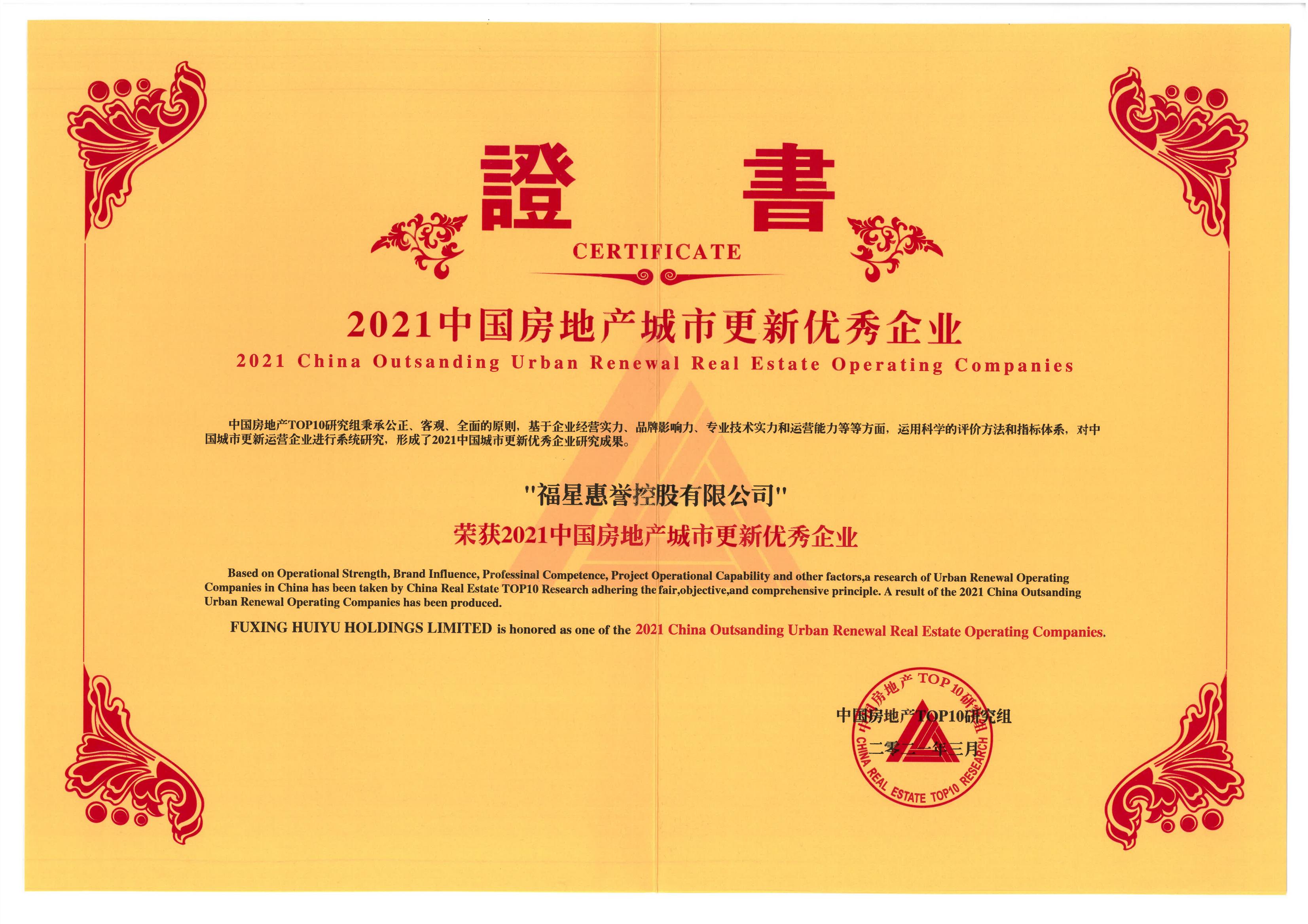 2021中國房地產年度城市更新典范企業