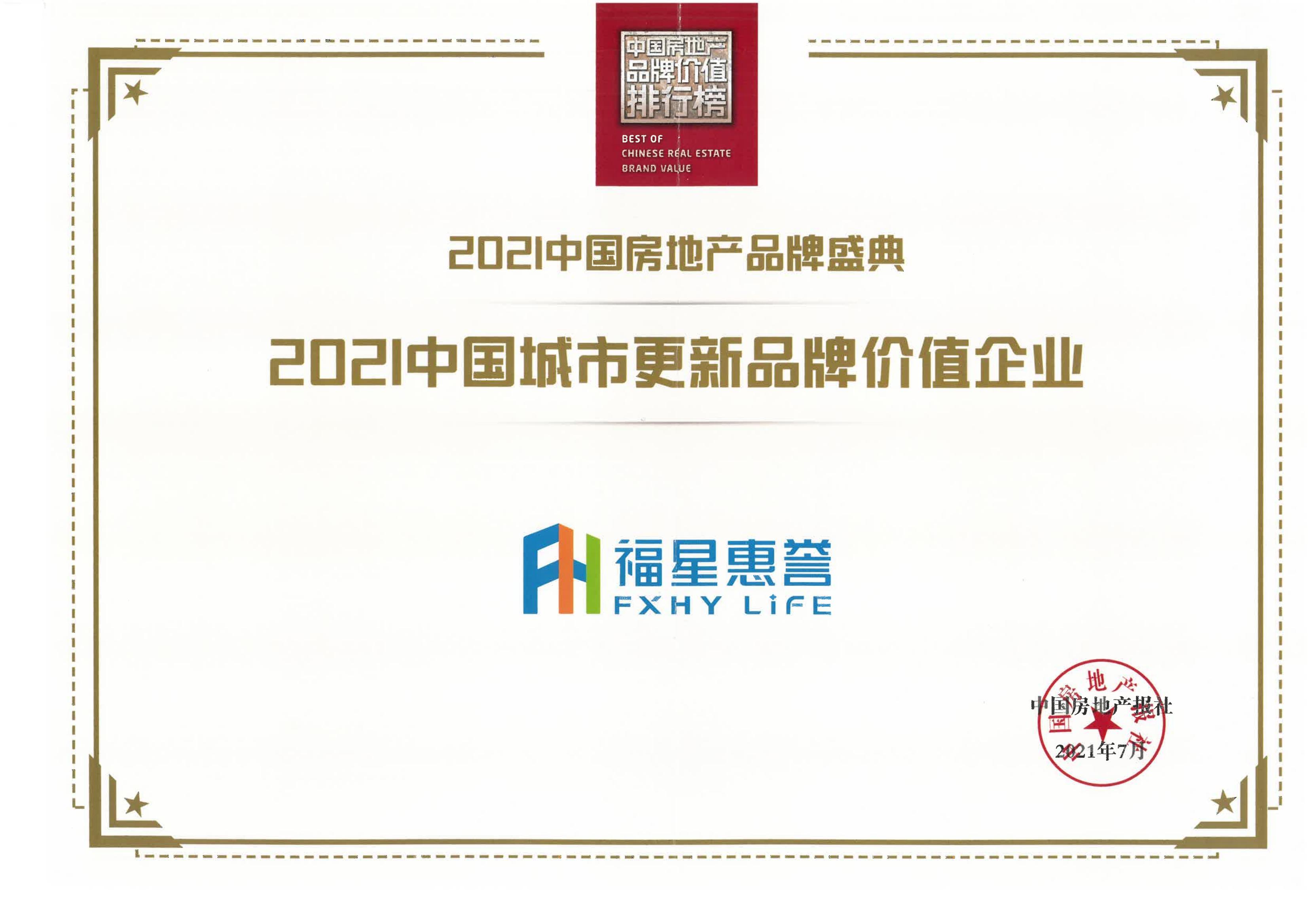 2021中國城市更新品牌價值企業